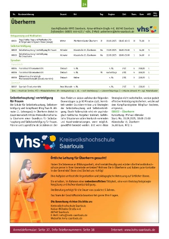 Anmeldeformular: Seite 37, Info-Telefonnummern: Seite 38 Internet: www.kvhs-saarlouis.de