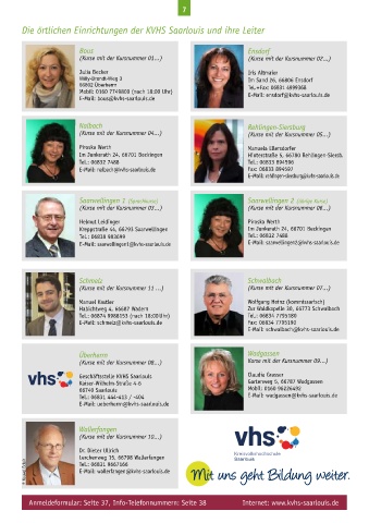 Anmeldeformular: Seite 37, Info-Telefonnummern: Seite 38 Internet: www.kvhs-saarlouis.de