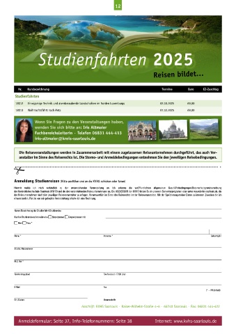 Anmeldeformular: Seite 37, Info-Telefonnummern: Seite 38 Internet: www.kvhs-saarlouis.de
