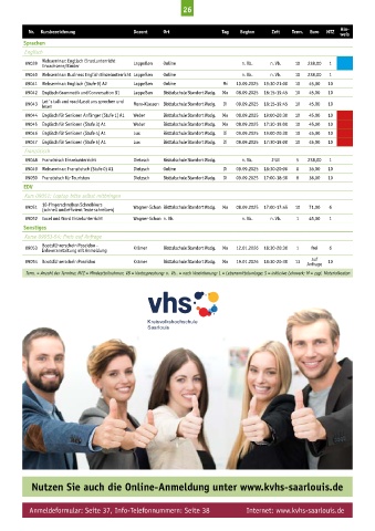 Anmeldeformular: Seite 37, Info-Telefonnummern: Seite 38 Internet: www.kvhs-saarlouis.de