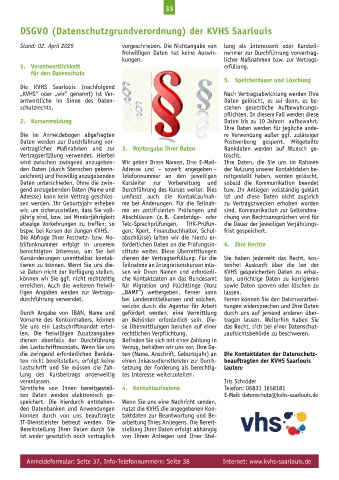 Anmeldeformular: Seite 37, Info-Telefonnummern: Seite 38 Internet: www.kvhs-saarlouis.de